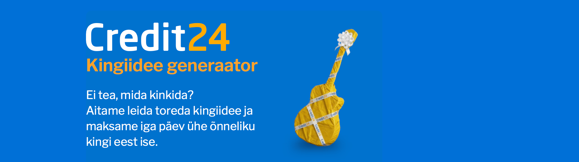 7. Kampaanias osalevad kõik, kes registreeruvad kampaania veebilehel https://credit24.ee/kingiidee, sisestavad oma kontaktandmed ning lasevad genereerida kingiidee, valivad selle hulgast oma lemmiku ja kinnitavad soovi loosimises osalemiseks.